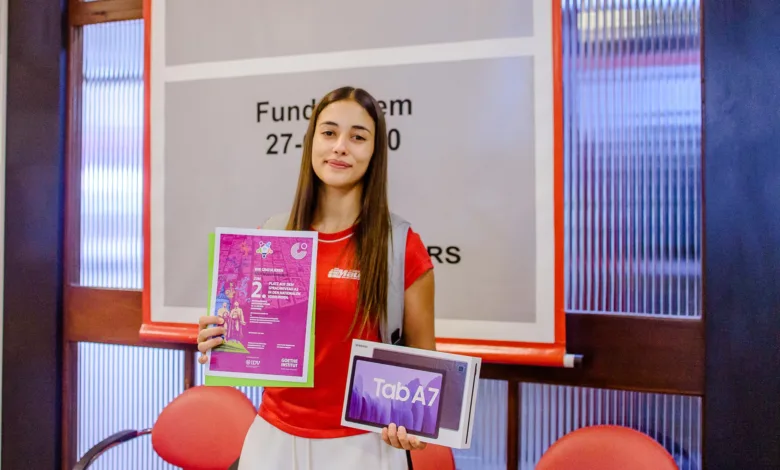 Na segunda fase da competição, em fevereiro deste ano, ainda durante as férias escolares, foram selecionados os seis melhores estudantes de cada nível A2 e B1. A cerimônia de premiação ocorreu de forma online, na plataforma do Goethe Institut. Nesta semana, a aluna recebeu o certificado e a premiação: um tablet Samsung A7.