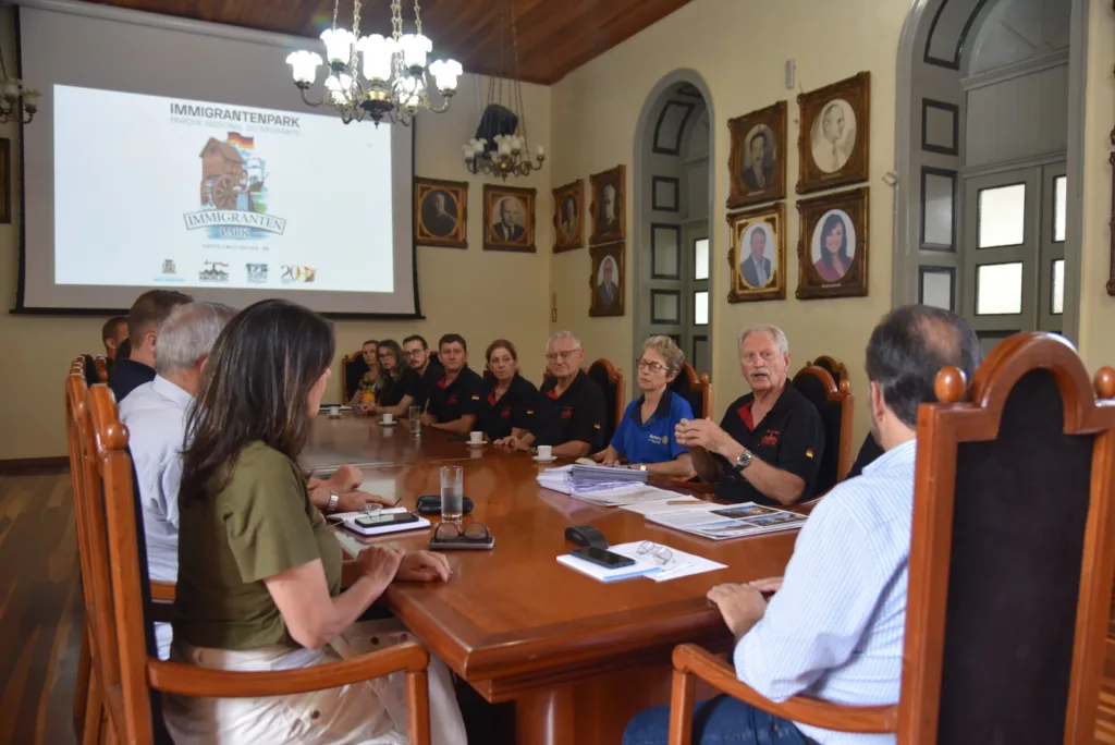 O prefeito de Santa Cruz do Sul, Sérgio Moraes, recebeu na manhã desta sexta-feira, dia 7, no Salão Nobre do Palacinho, uma comitiva de representantes da Associação de Moradores de Linha Santa Cruz (Amorlisc). O motivo da visita, a primeira após a posse da nova diretoria da entidade, foi apresentar à atual Administração, o projeto para implantação do Imigrantenpark, o Parque Regional do Imigrante, que será edificado na Granja Municipal, em área cedida pelo Município.