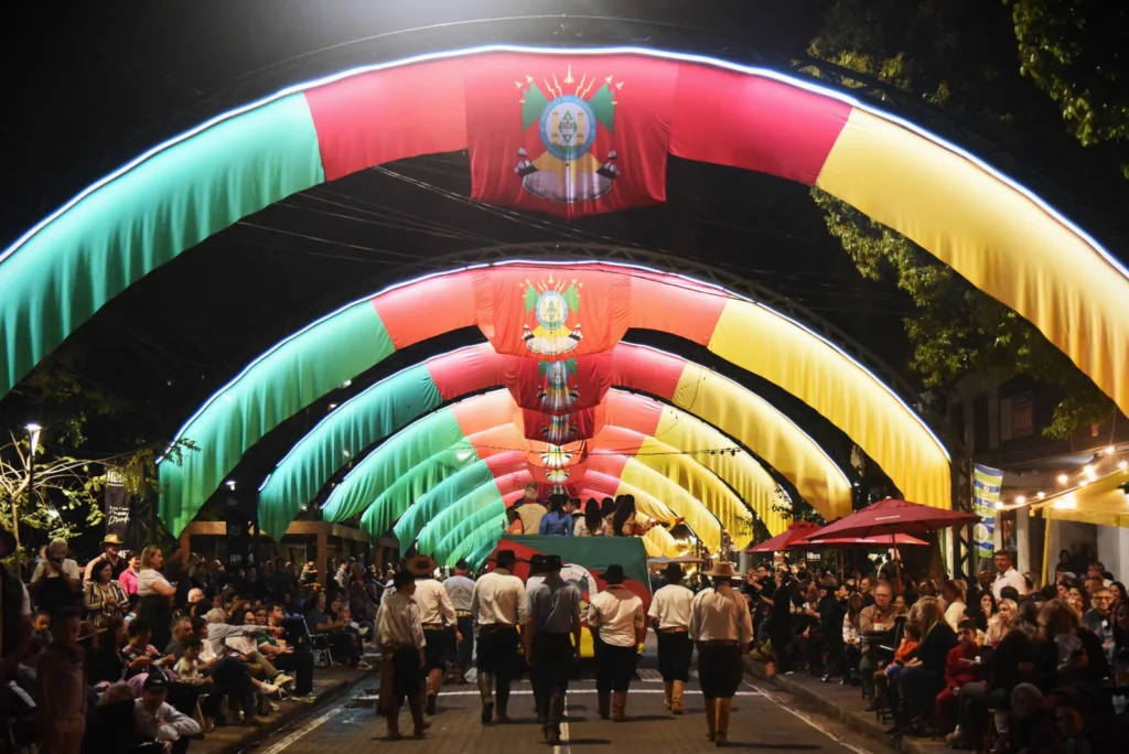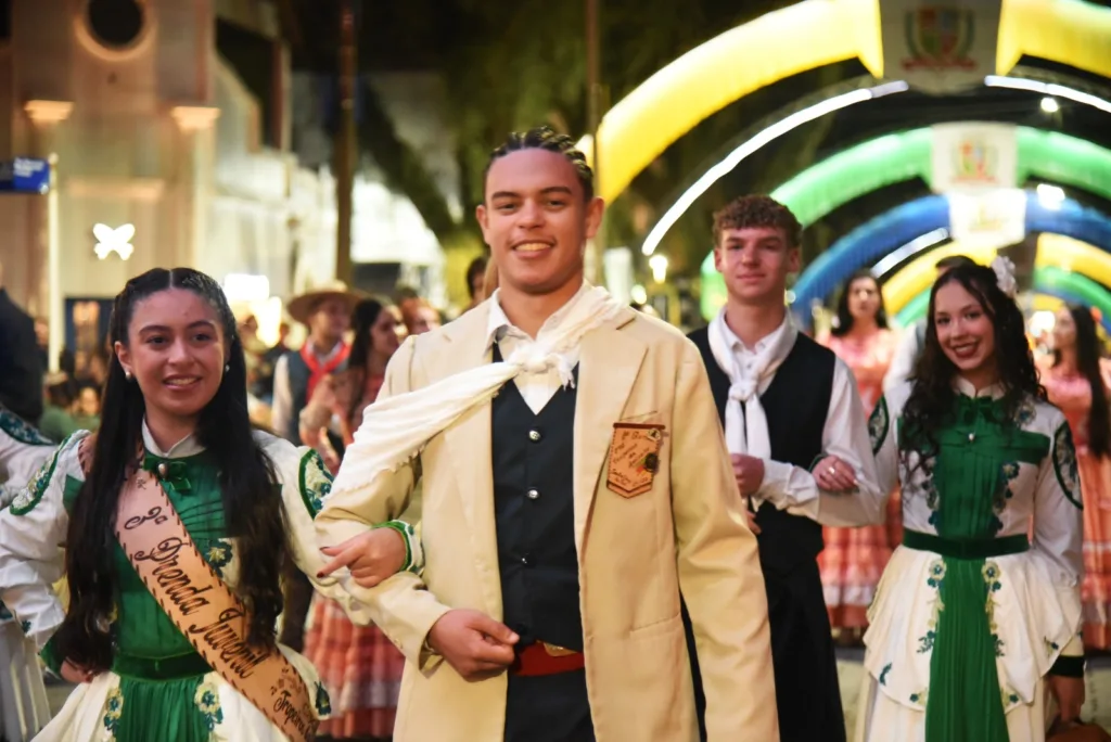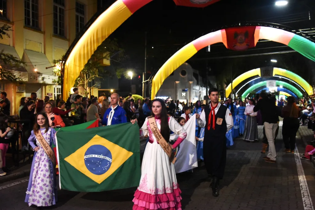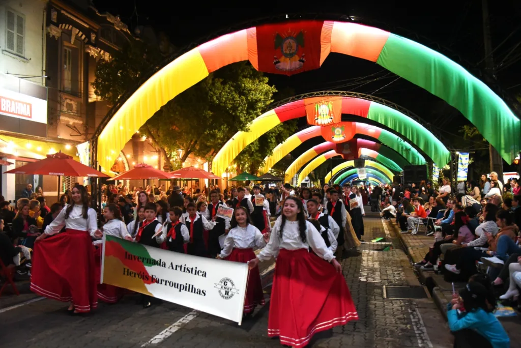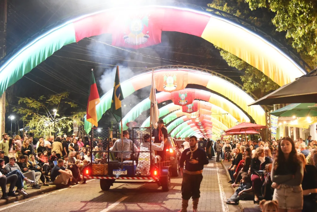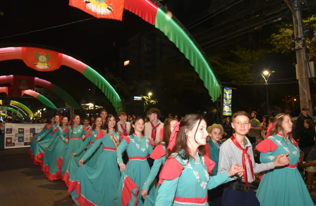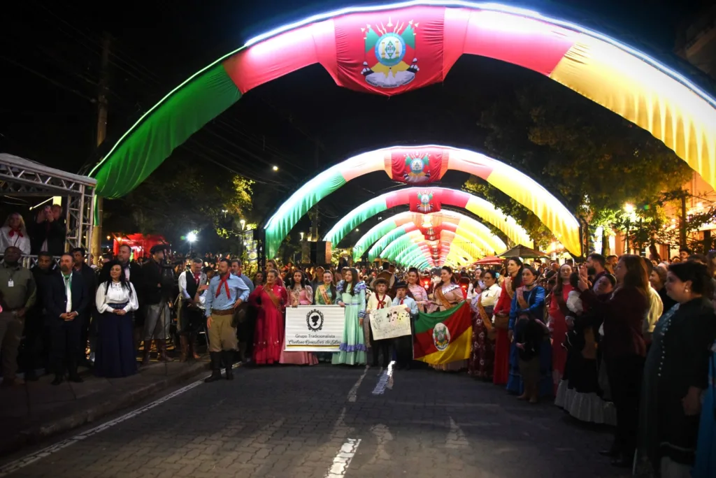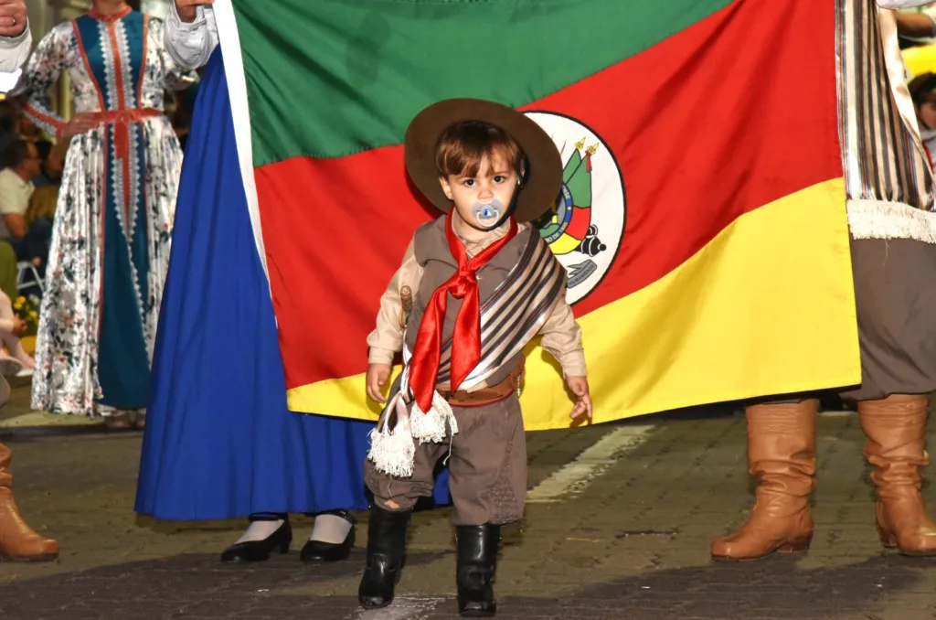 O primeiro desfile temático farroupilha noturno de que se tem registro em Santa Cruz do Sul reuniu milhares de pessoas na Rua Marechal Floriano, na noite desta terça-feira, 16. O espetáculo contou com 23 entidades tradicionalistas, que deram início ao cortejo por volta das 19h30, estendendo-se até depois das 21h. O público acompanhou cavalarianos, carros alegóricos, apresentações de dança e até churrasco sendo preparado na carroceria de caminhões.