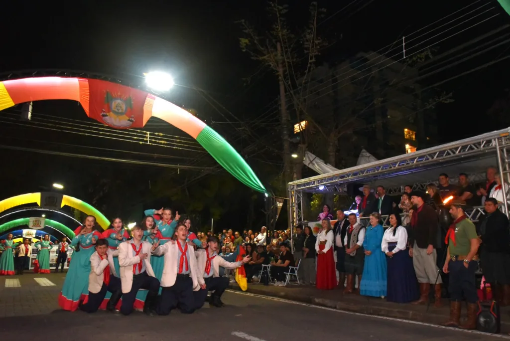 A abertura ficou marcada pela condução da chama crioula pelo Grupo Cavaleiros da Integração. A centelha foi levada até o palanque das autoridades, em frente à Praça da Bandeira, e deu início ao desfile que prestou homenagens ao tema municipal da Semana Farroupilha deste ano: os 150 anos da imigração italiana no Brasil. Entre os destaques, esteve o carro alegórico que trouxe Leodi Pavi, patrono da Semana Farroupilha 2025, ao lado da santa-cruzense Amanda Kothe Bartz, que carrega o título de 2ª Prenda Juvenil do Estado.