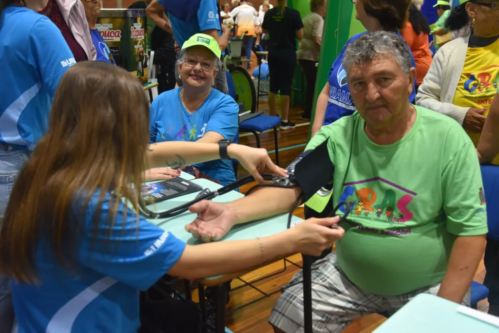 O encontro contou com vários serviços de saúde, como a aferição da pressão arterial, tipagem sanguínea, além de orientações e informações de serviços prestados por entidades como o Centro Municipal de Referência do Idoso (CRI), Associação dos Aposentados e Pensionistas de Santa Cruz (Apopesc), Uniama, da Unisc, e Maturidade Ativa, do Sesc.