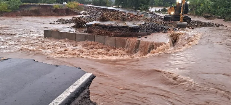 Na terça-feira (17), a área já havia sido interditada preventivamente em razão da elevação do nível da água, mas o tráfego chegou a ser liberado de forma temporária no final do dia. Com a continuidade das chuvas durante a noite, o bloqueio precisou ser restabelecido. Na manhã desta quarta-feira, o desvio cedeu por completo, tornando inviável a circulação de veículos