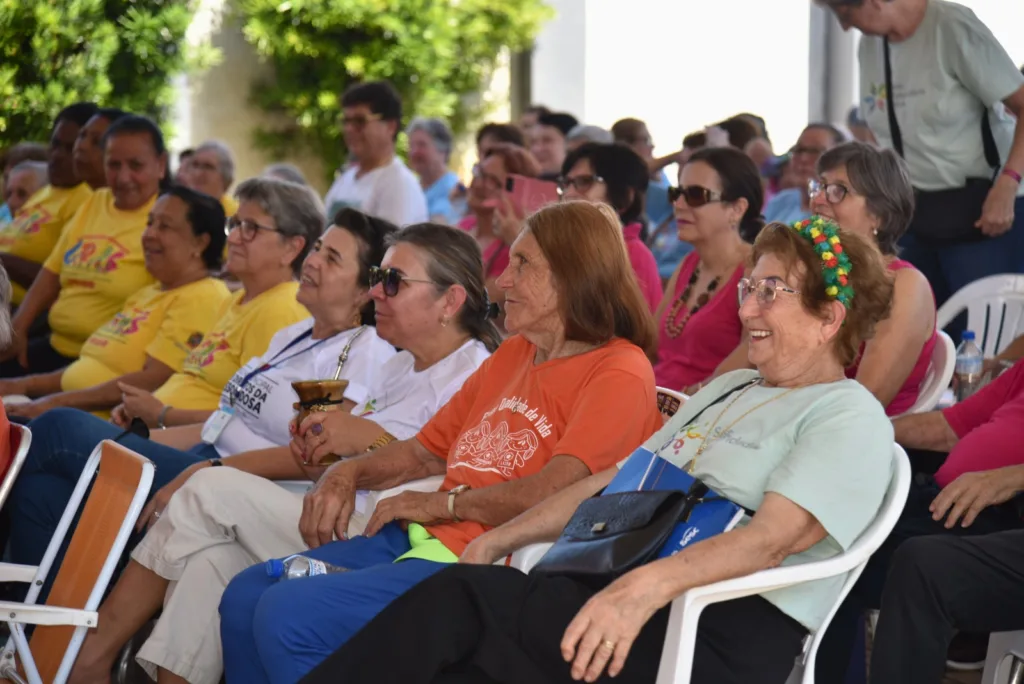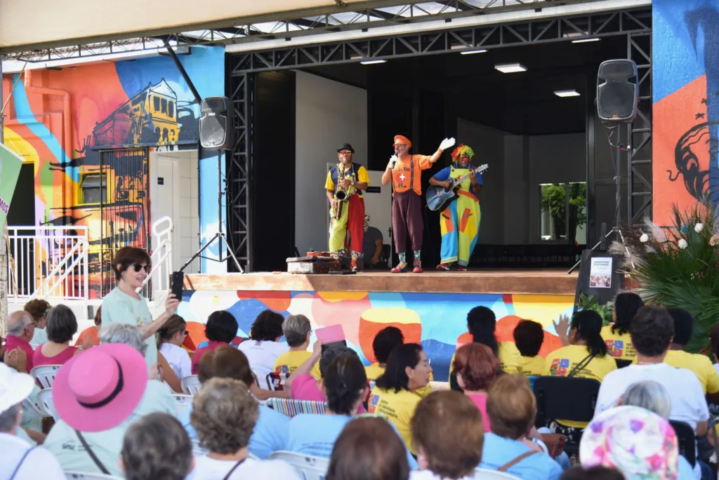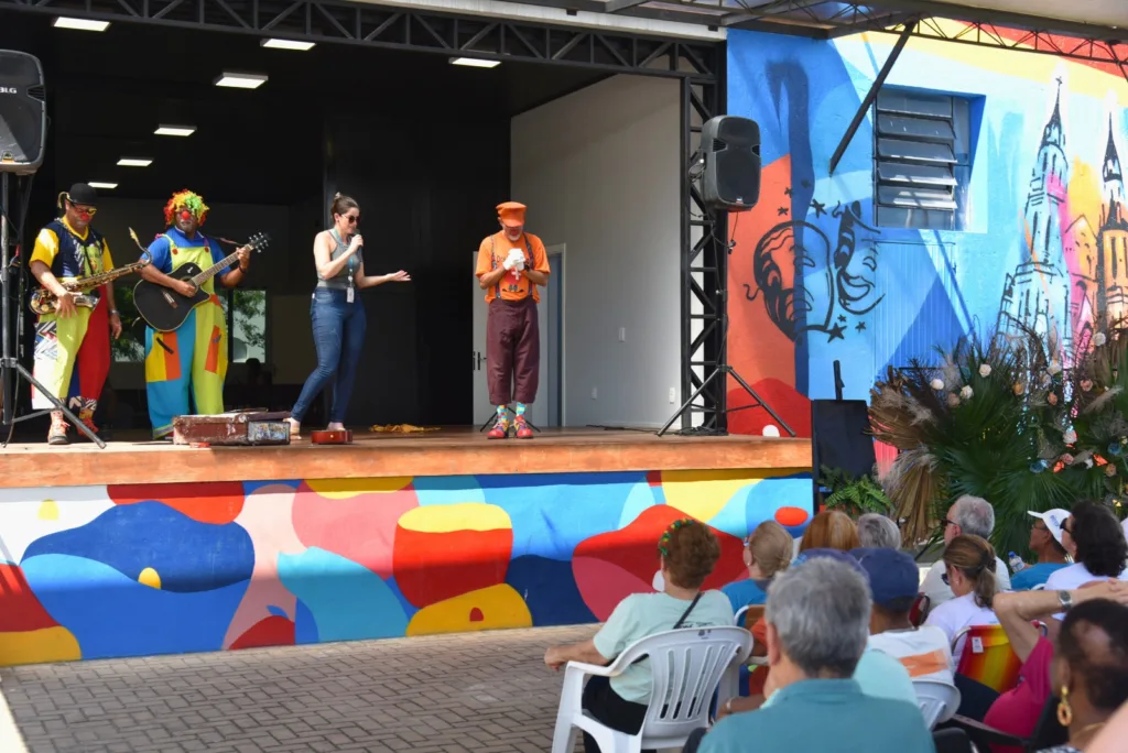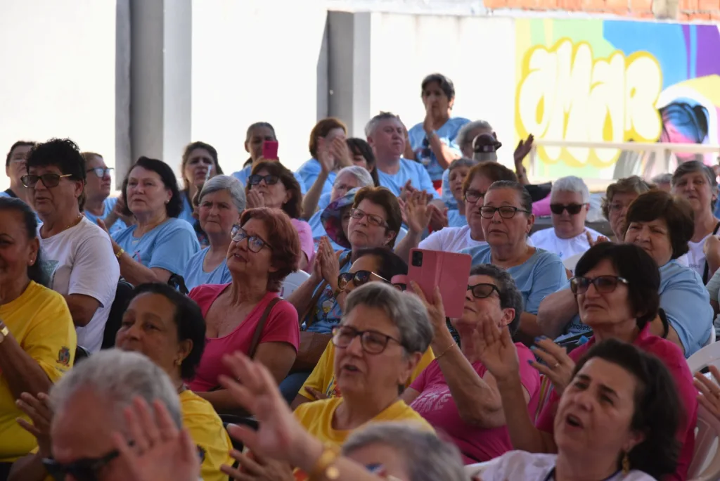 A manhã de sol e altas temperaturas desta terça-feira, 22, reuniu mais de uma centena de participantes de projetos sociais destinados a terceira idade na Praça José Paulo Rauber Filho, mais conhecida como a Praça da Cultura. O evento, que se estendeu até o meio-dia, teve apresentação do coral do Sesc, animação com os voluntários da Doutores Só Risos, lanches e a exposição dos trabalhos desenvolvidos pelas entidades. Muita palma, gargalhada, cantoria e diversão foi o que se viu do início ao final da mostra.