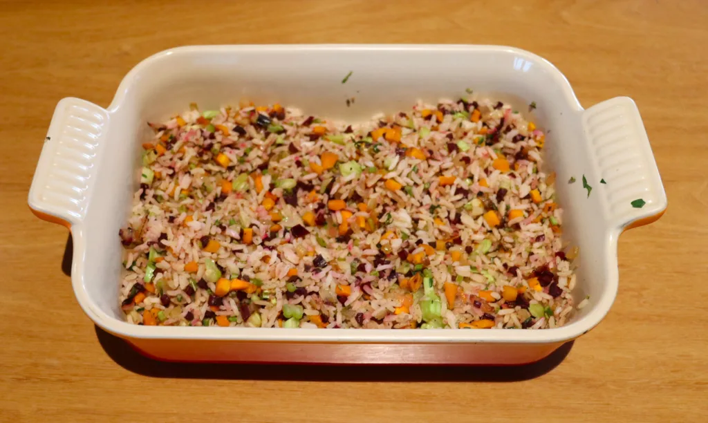 ● 3 xícaras de arroz cozido;