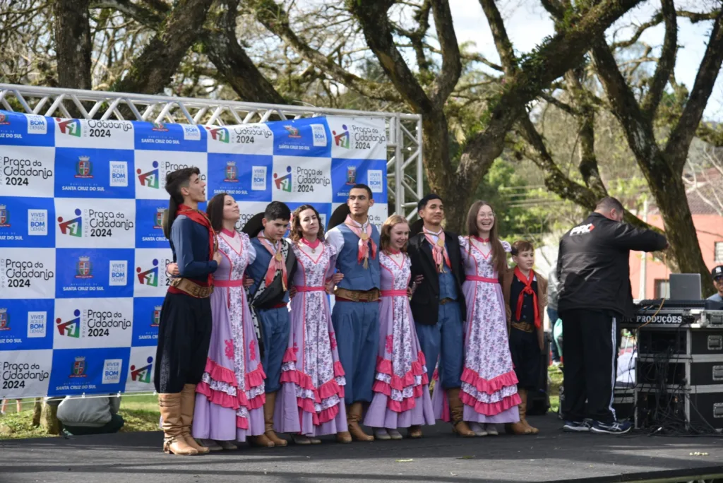A família Lopes trouxe o chimarrão para espantar o frio e participou pela primeira vez do evento. “Muito bem organizado, com uma programação atrativa, brincadeiras para as crianças e diversos serviços à disposição da comunidade”, elogiaram Danubia Sehn, Arthur Andres Lopes, Gerson Lopes e Pedro Lopes. Para eles, um dos destaques foi a apresentação do grupo juvenil do CTG Lanceiros de Santa Cruz. Além deles, esta edição da Praça da Cidadania contou com a participação do professor de dança Guilherme Eduardo Alexsander Gonçalves, do grupo Superação, e do cantor Baco Lopes.