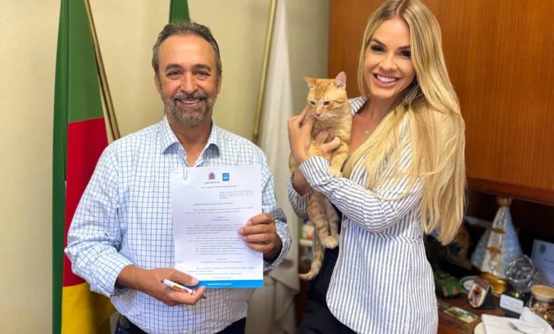 Nesta quarta-feira, 4, Santa Cruz do Sul deu mais um importante passo no combate à esporotricose. Ao lado da secretária de Bem-Estar Animal, Bruna Molz, e do gatinho resgatado Bilbo, o prefeito Sérgio Moraes sancionou a Lei Municipal nº 10.284/26, que institui o Programa Municipal de Enfrentamento e Controle da Esporotricose Animal e Humana, e assinou o Decreto nº 12.731, que regulamenta a norma e estabelece os procedimentos para sua execução.