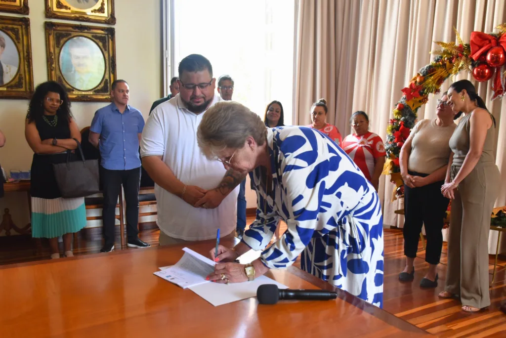 Durante o ato de assinatura, que contou com a presença de autoridades municipais e de representantes das escolas de samba, a prefeita recordou as dificuldades pelas quais as agremiações sempre passaram para colocar o carnaval na rua. “Eu vi anos atrás o quanto era penoso querer apresentar um bonito carnaval e não ter apoio. Me comprometi a ajudar porque eu via a dedicação e o esforço de todos os envolvidos e quero deixar aqui meu reconhecimento pelo trabalho e pela luta de vocês”, disse.