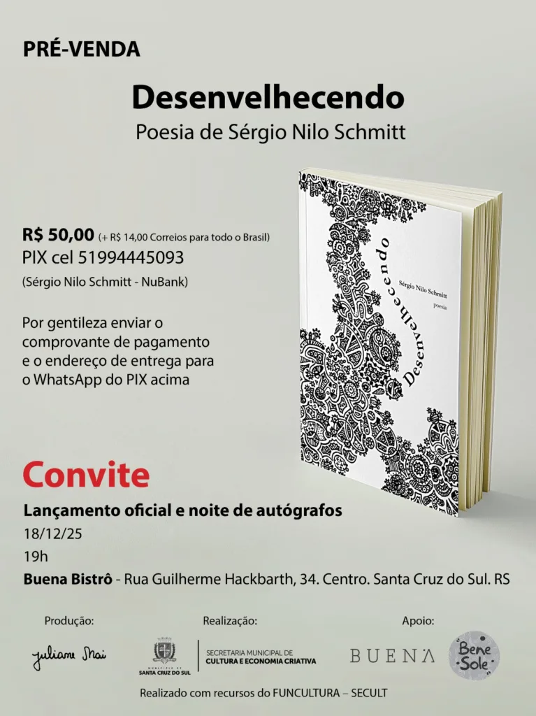 Lançamento e noite de autógrafos: 18 de dezembro, no Buena Bistrô – Rua Guilherme Hackbart, 34.