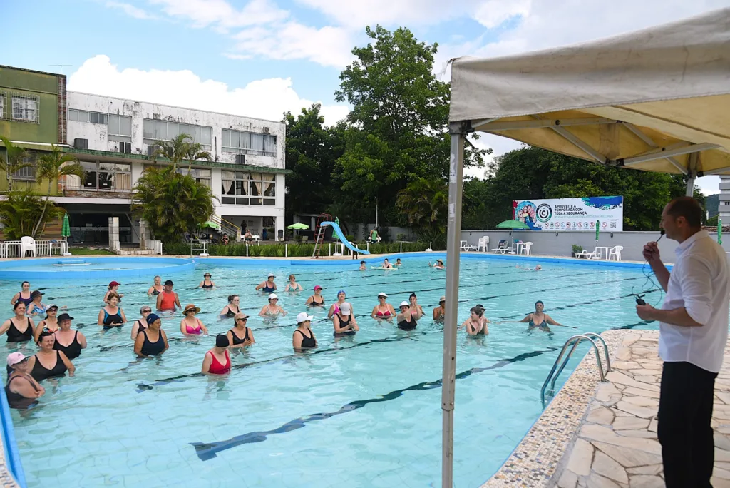 Felizes com a oportunidade, as amigas Sílvia Riediger, de 66 anos, e Noeli Vrielink, de 81, aguardavam ansiosas à beira da piscina. “Tenho tanta energia que até meus netos perdem pra mim. Vim fazer natação porque quero manter minha saúde em dia”, brincou Noeli, que veio de Capão da Cruz, do Bairro Esmeralda, até o centro, para participar da atividade. As aulas são conduzidas por profissionais de educação física e estagiários da Secretaria de Esportes e Lazer.