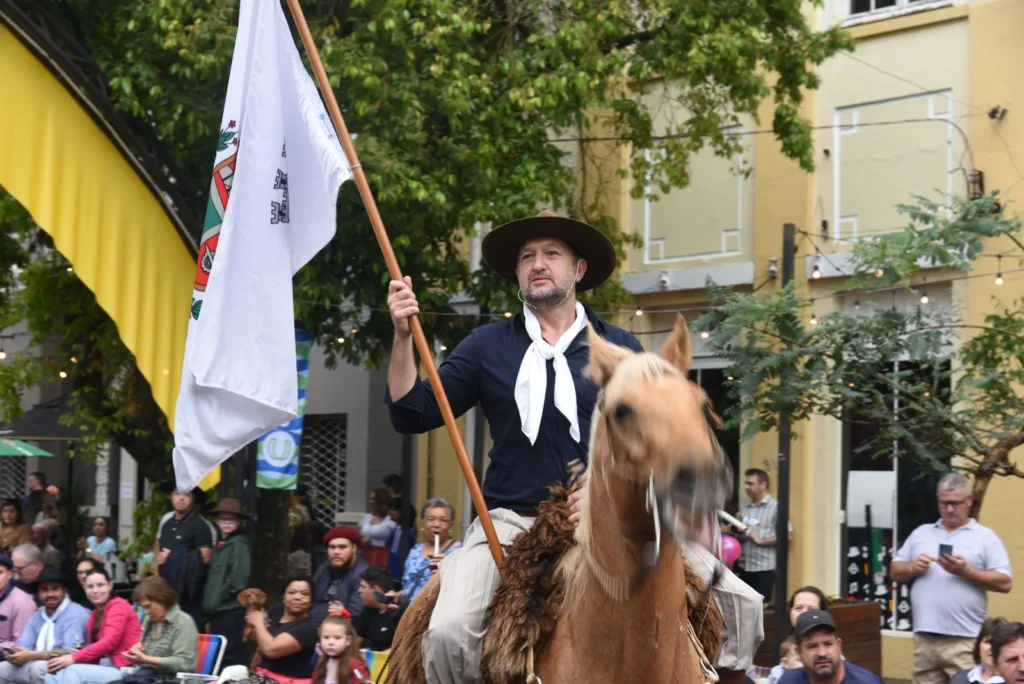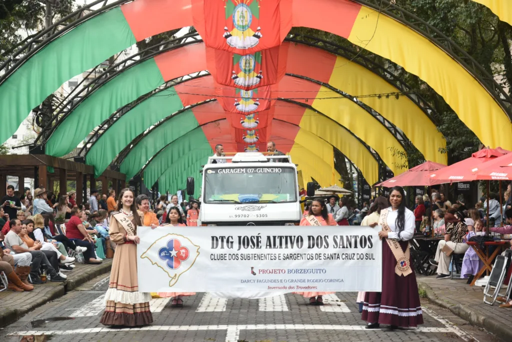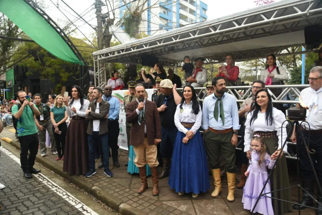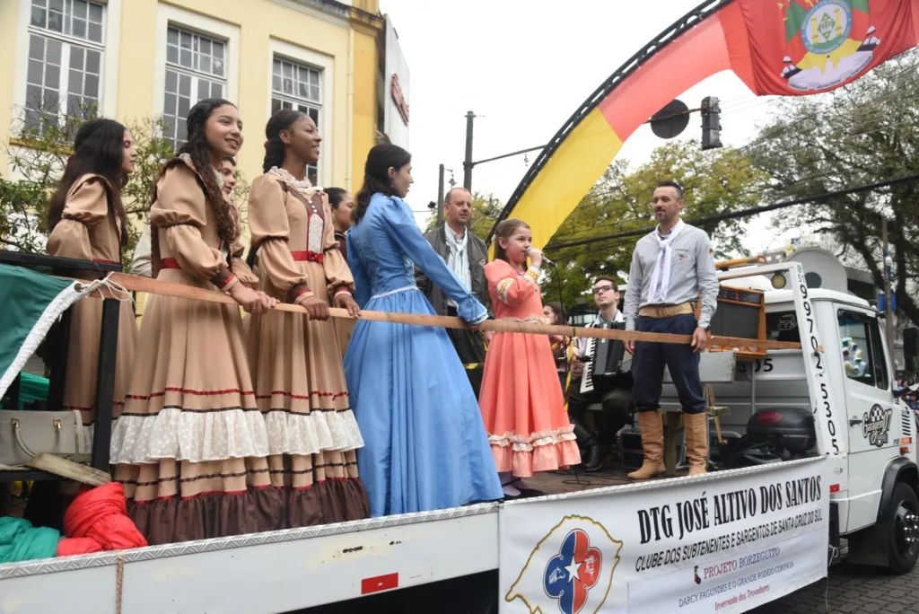 O centro de Santa Cruz do Sul foi tomado pelo tradicionalismo na manhã deste sábado, feriado de 20 de setembro, com o Desfile Farroupilha realizado na Rua Marechal Floriano Peixoto. Diferente dos últimos anos, quando acontecia na Rua Ernesto Alves, a mudança de local levou a celebração ao coração da cidade. O público acompanhou a passagem de cavalarianos, carros alegóricos, apresentações artísticas e até churrascos preparados sobre a carroceria de caminhões. Ao todo, 39 entidades participaram do desfile, entre delegações a pé, entidades campeiras e grupos culturais.
