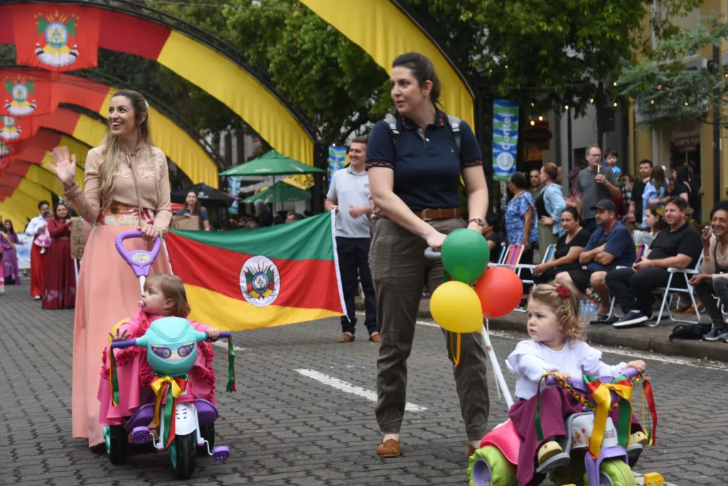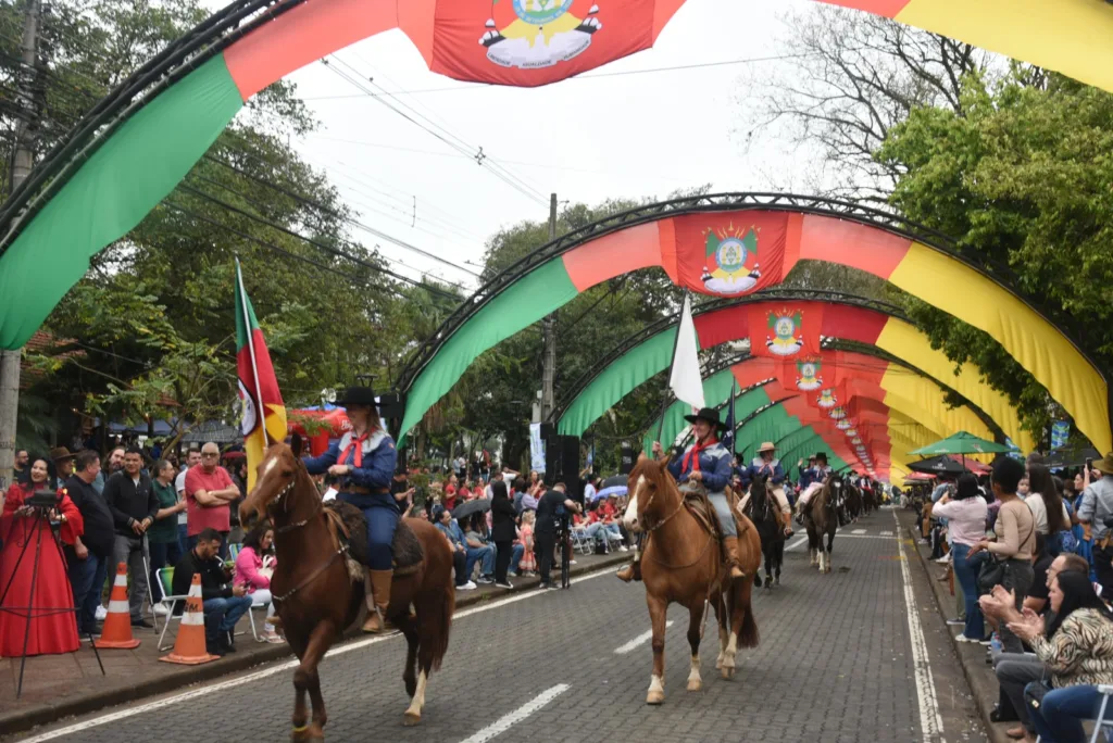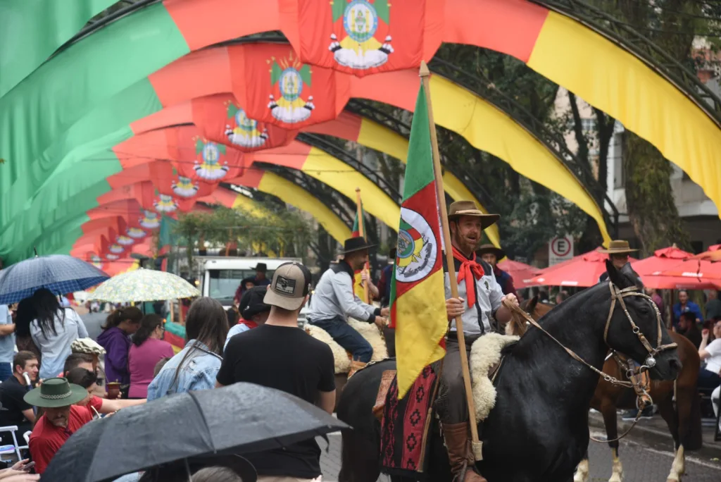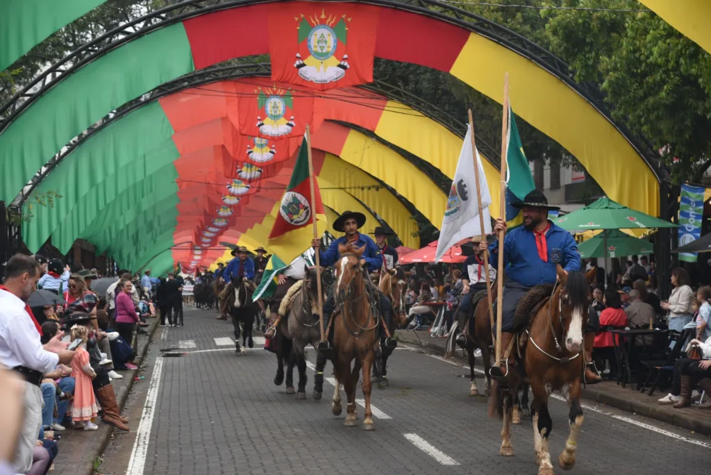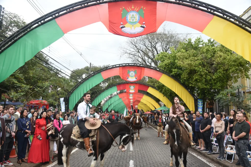 O centro de Santa Cruz do Sul foi tomado pelo tradicionalismo na manhã deste sábado, feriado de 20 de setembro, com o Desfile Farroupilha realizado na Rua Marechal Floriano Peixoto. Diferente dos últimos anos, quando acontecia na Rua Ernesto Alves, a mudança de local levou a celebração ao coração da cidade. O público acompanhou a passagem de cavalarianos, carros alegóricos, apresentações artísticas e até churrascos preparados sobre a carroceria de caminhões. Ao todo, 39 entidades participaram do desfile, entre delegações a pé, entidades campeiras e grupos culturais.