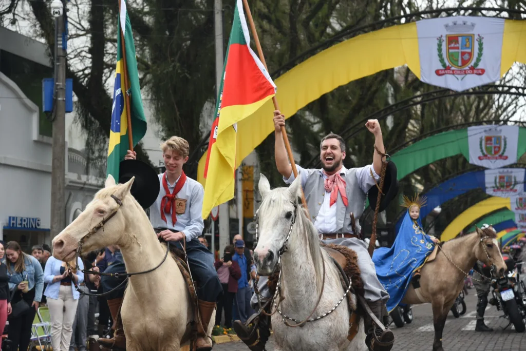 Entre as autoridades presentes estavam os deputados federais Marcelo Moraes e Heitor Schuch, a deputada estadual Kelly Moraes, a presidente da Câmara de Vereadores, Nicole Weber Covatti, além de secretários municipais e vários outros parlamentares. O presidente da Associação Tradicionalista Santa-Cruzense (ATS) e coordenador da comissão dos festejos farroupilhas, Tibicuera Almeida, e a coordenadora da 5ª Região Tradicionalista, Marisa Rossa, também participaram da festividade. O vice-prefeito Alex Knak desfilou a cavalo em duas oportunidades, interagindo com o público em diversos momentos.