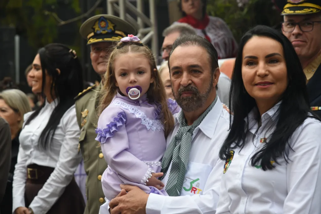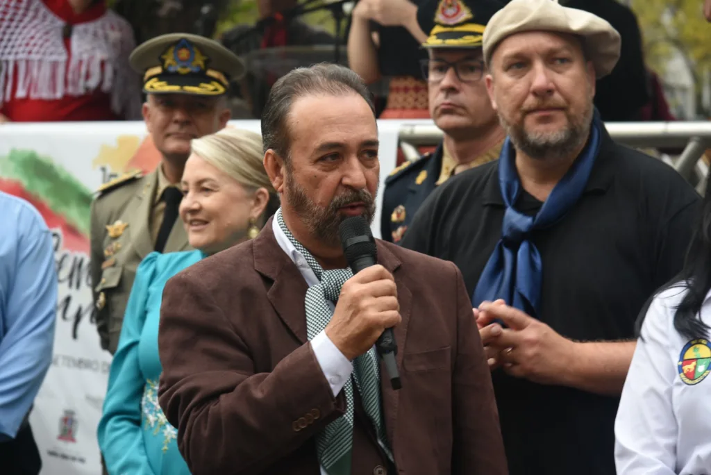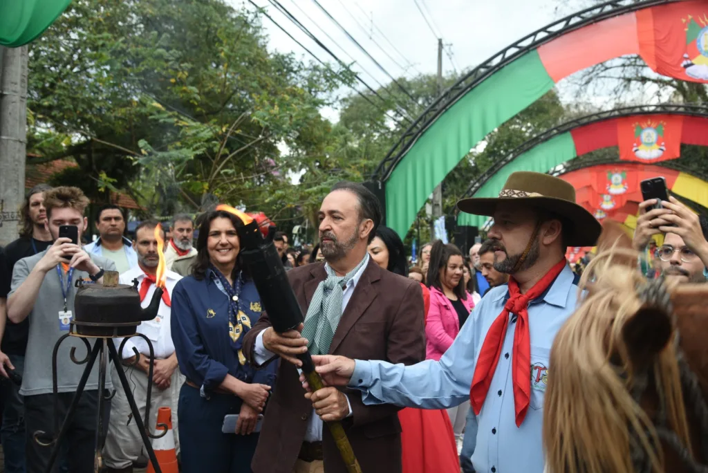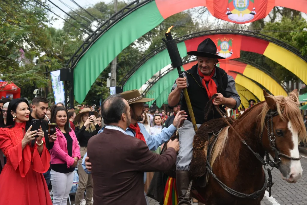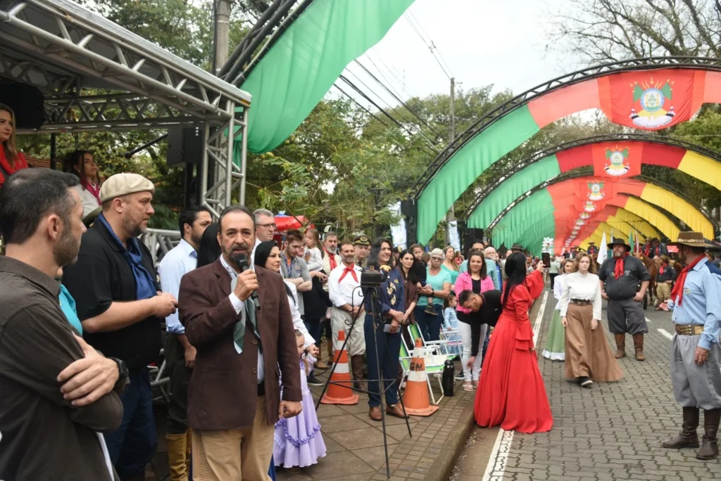 O prefeito Sérgio Moraes acompanhou a festividade ao lado da primeira-dama Fátima Alves da Silva, no palanque das autoridades, em frente à Praça da Bandeira, e recebeu a chama crioula junto das demais autoridades. Em um pronunciamento, destacou a repercussão estadual e nacional da decoração farroupilha de Santa Cruz deste ano, que vem sendo considerada uma das mais belas do Rio Grande do Sul. Ele explicou que a transferência do desfile para a Marechal Floriano buscou valorizar ainda mais os festejos e garantir maior visibilidade e protagonismo à tradição.