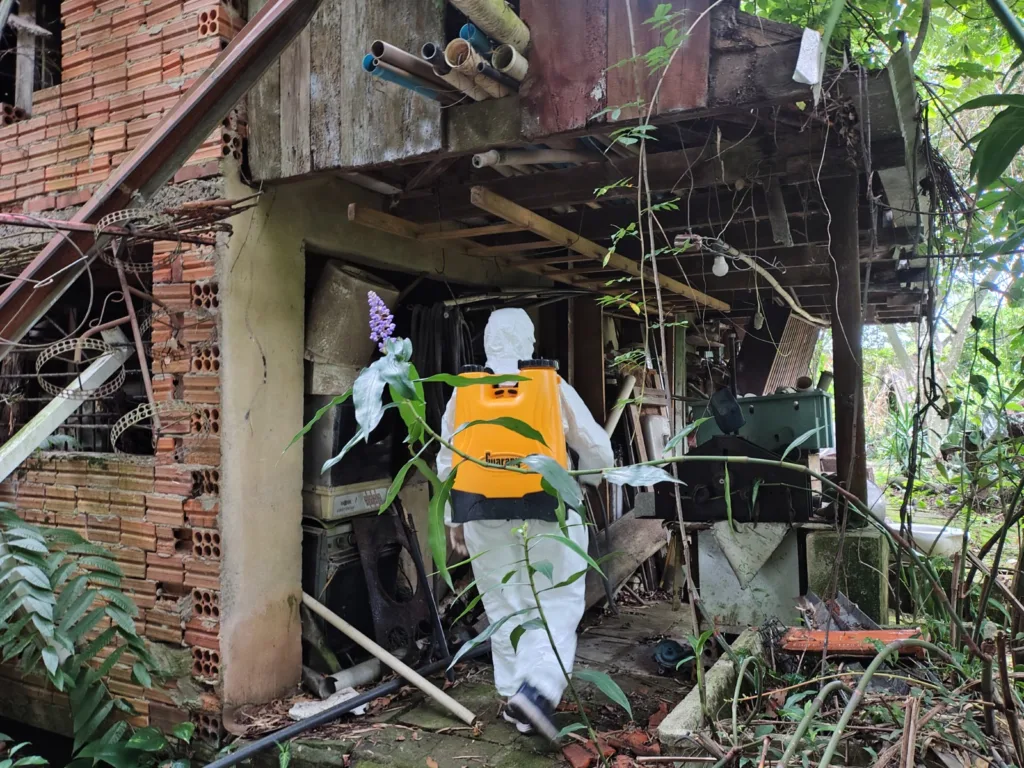 A Borrifação Residual Intradomiciliar consiste na aplicação dirigida de inseticida em superfícies internas de imóveis previamente identificados pela vigilância, com o objetivo de eliminar mosquitos adultos e reduzir a presença do Aedes aegypti, vetor da dengue, chikungunya e zika vírus. A medida integra as ações preconizadas pelo Ministério da Saúde para o controle das arboviroses.