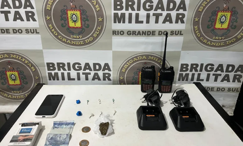 Em determinado momento, os policiais avistaram o suspeito, que tentou fugir ao perceber a aproximação da viatura. Ele foi abordado, identificado e, durante a revista, foram apreendidas duas porções de cocaína, uma porção de maconha, seis porções de crack, um celular, dois rádios comunicadores e dinheiro em espécie.