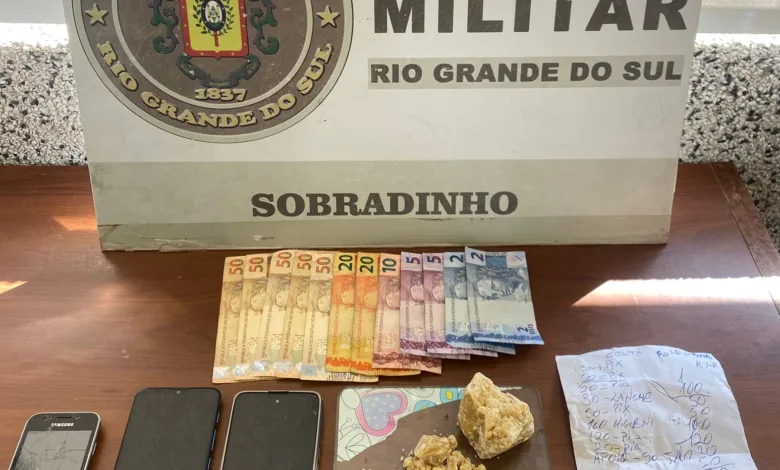 Além da droga, também foram encontrados R$314,00 em espécie, três celulares, duas lâminas, um recipiente de vidro e uma anotação com indícios de envolvimento com o tráfico.