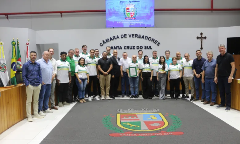 A Câmara de Vereadores de Santa Cruz do Sul realizou nesta segunda-feira, dia 13, uma sessão solene em homenagem à Associação Santa-cruzense de Árbitros (ASCA), por proposição do vereador Edson Sortica (PL). A iniciativa visa reconhecer a relevante contribuição da entidade para o desenvolvimento do esporte amador na região, através da organização e qualificação da arbitragem esportiva.