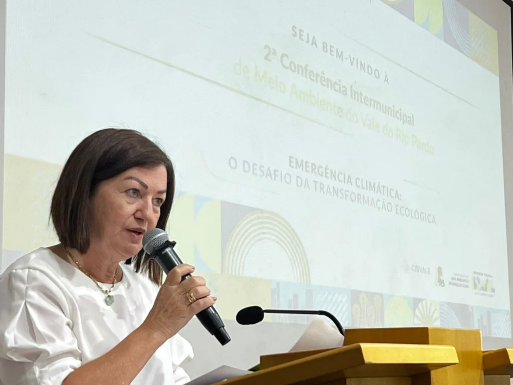 A coordenadora de biodiversidade da Secretaria Estadual de Meio Ambiente Cátia Viviane Gonçalves falou sobre a importância do debate regional, pois a composição das conferências estadual e nacional – que precisam estarem concluídas até o mês de maio de 2025 – terão participação direta na próxima COP-30, que a Organização das Nações Unidas (ONU) realiza no Brasil, em novembro de 2025. “Hoje estamos fazendo história neste auditório e o governo do Estado fica muito feliz ao ver a participação expressiva desta região neste processo. Agora, mais do que nunca, é necessário olhar com cuidado e atenção para o meio ambiente”, reforça Cátia.