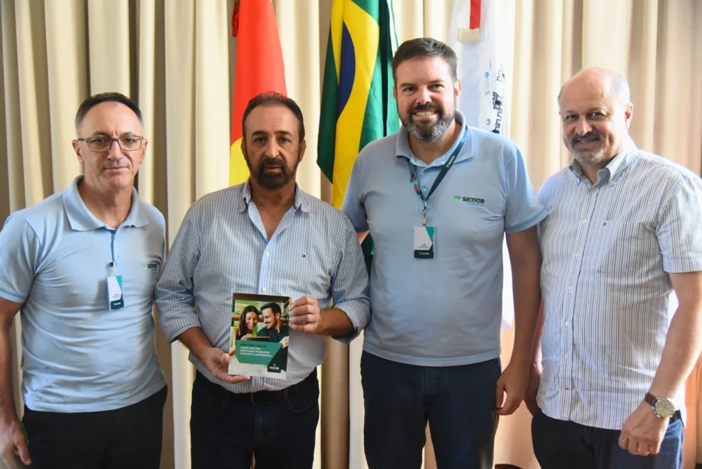 Logo após, foi a vez de uma representação do Sicoob estreitar os laços com a atual gestão. O gerente Cleomar Antonio Barbieri e o coordenador administrativo Luiz Artur Panke, foram recebidos pelo prefeito e pelo secretário municipal de Fazenda, Bruno Faller. Os executivos falaram sobre a estrutura organizacional e apresentaram números que mostram a expansão da instituição financeira no Estado e no país, hoje a maior cooperativa de crédito do sistema financeiro.