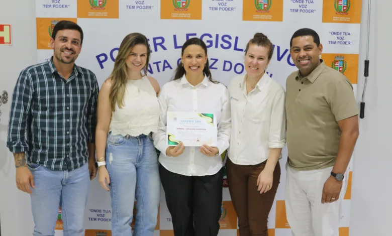 A Câmara de Vereadores foi palco de uma significativa homenagem na recente sessão ordinária, dia 22. O vereador Professor Cleber (União Brasil) realizou a entrega de uma Moção de Congratulações à equipe da Sonora Soluções Auditivas, em celebração ao quinto aniversário da empresa no município.