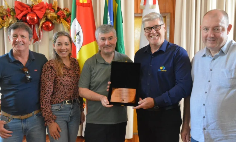 A agência garantidora de crédito RS Garanti celebrou o sucesso da parceria inovadora entregando uma placa comemorativa à prefeita Helena Hermany na última quinta-feira (12). A condecoração foi recebida pelo secretário de Desenvolvimento Econômico e Turismo (Sedet), Cesar Cechinato, e pelo coordenador do Banco do Povo, Paulo Mans.