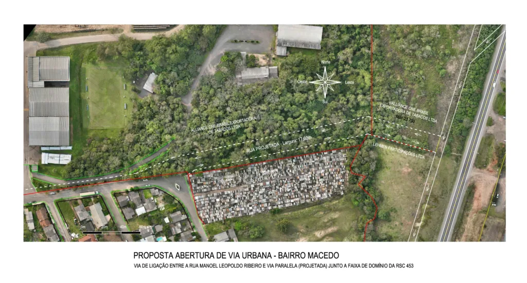 O prefeito Jarbas da Rosa ressaltou que a abertura de rua lateral a RSC 453, desde o trevo do bairro Coronel Brito até o bairro Brands e Macedo, desviaria o trânsito da rodovia, permitindo uma nova rota para caminhões de cargas, especialmente de empresas como Alliance One e adjacentes. “A Prefeitura já está trabalhando ali próximo mais uma rota de acesso a partir da rua Manoel Leopoldo Ribeiro, tirando de dentro do bairro Macedo o trânsito de caminhões pesados”, revela o prefeito.