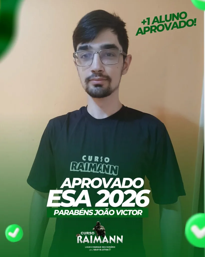 Quer iniciar sua preparação para EsSA, EsPCEx, EEAR ou AFA? Entre em contato com o Curso Raimann e dê o primeiro passo rumo à sua carreira militar. Vagas limitadas.