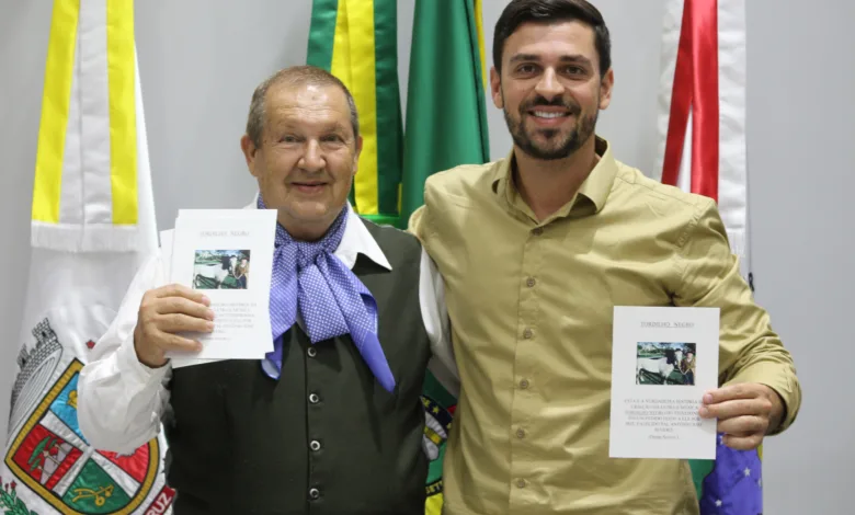 O tradicionalista Leodi Pavi esteve na Câmara de Vereadores durante a sessão ordinária desta segunda-feira, dia 23, quando fez a divulgação de uma publicação da qual é autor, sobre a pesquisa realizada sobre a música Tordilho Negro, do cantor Teixeirinha.