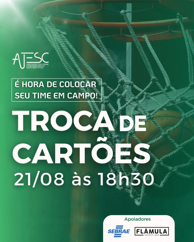 No próximo dia 21 de agosto, a partir das 18h30, Santa Cruz do Sul será palco de um dos eventos mais aguardados pelo empresariado local: o “Troca de Cartões da AJESC 2024”. Organizado pela Associação de Jovens Empresários de Santa Cruz do Sul (AJESC), o encontro ocorrerá no Flamula Sport Bar, no centro da cidade, e promete reunir empresários de diversos segmentos, além de associados, patrocinadores e interessados em expandir suas redes de contatos e fortalecer suas marcas.